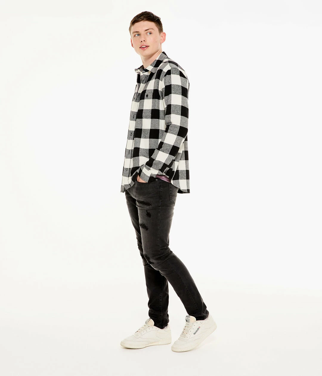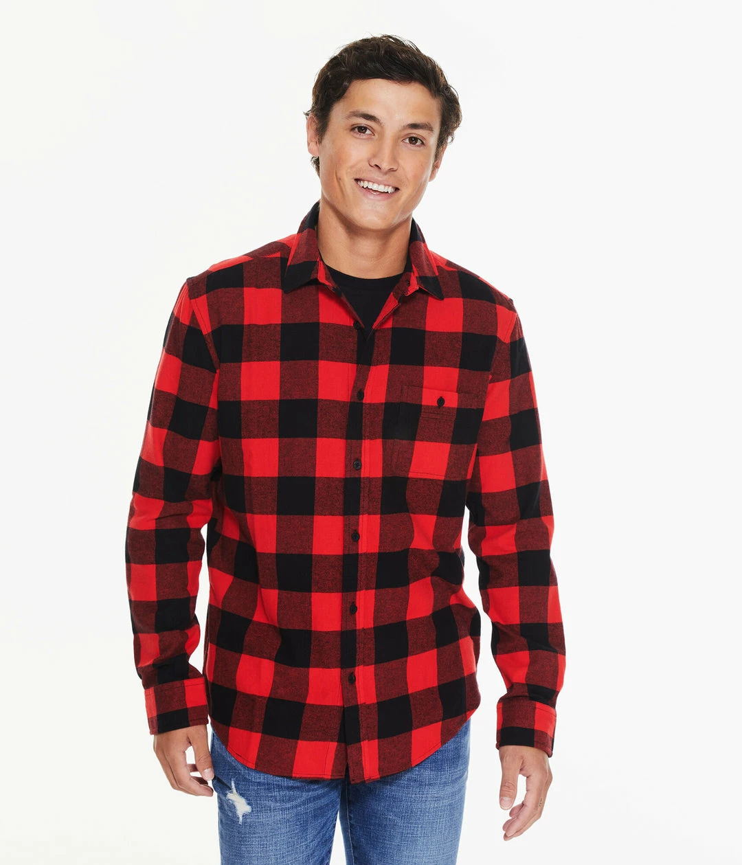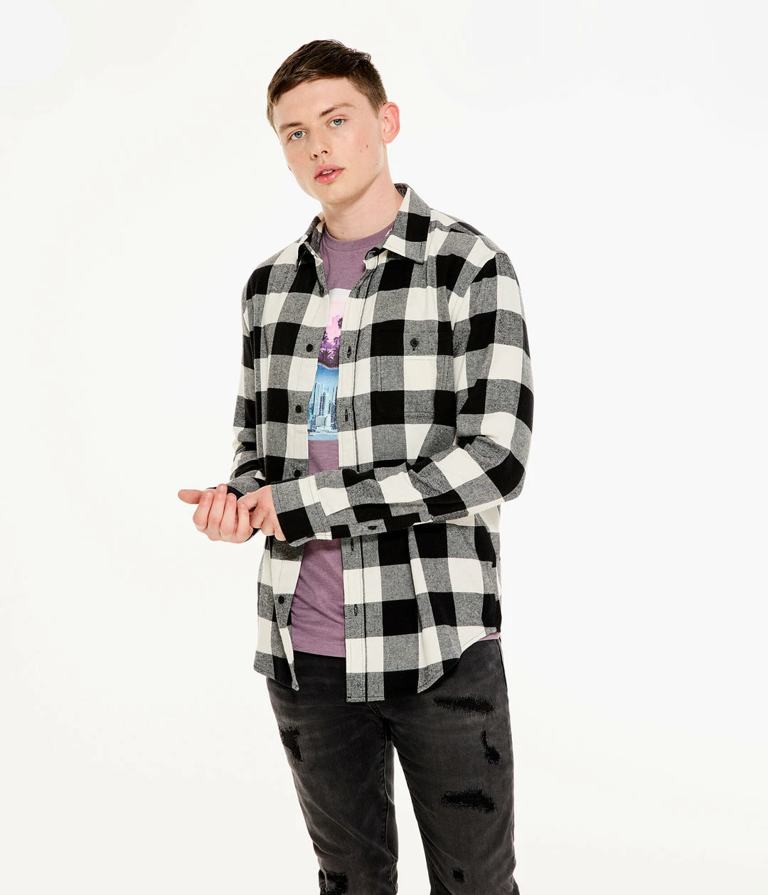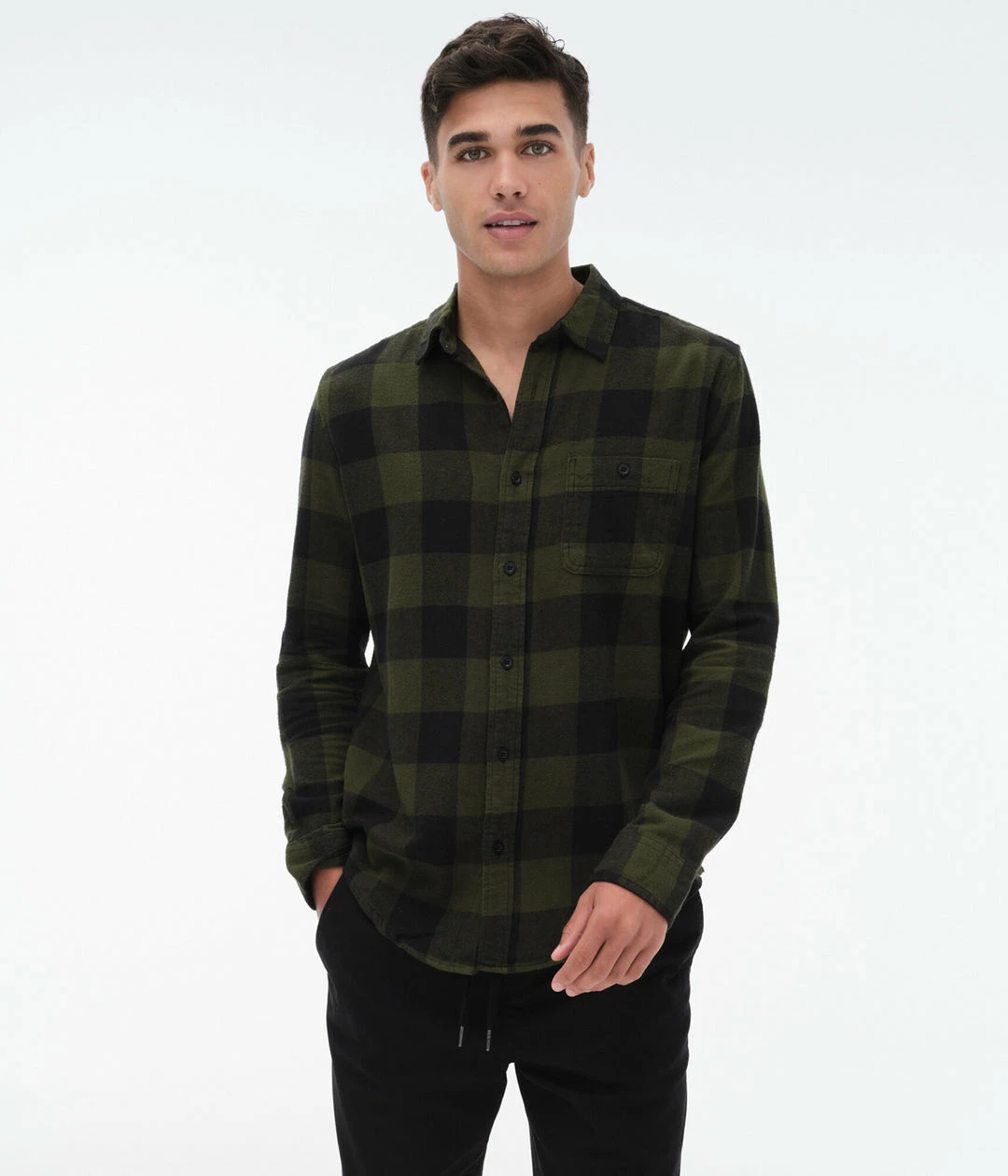 Aeropostale Men’s Buffalo Check Softspun Flannel Button-Down Shirt