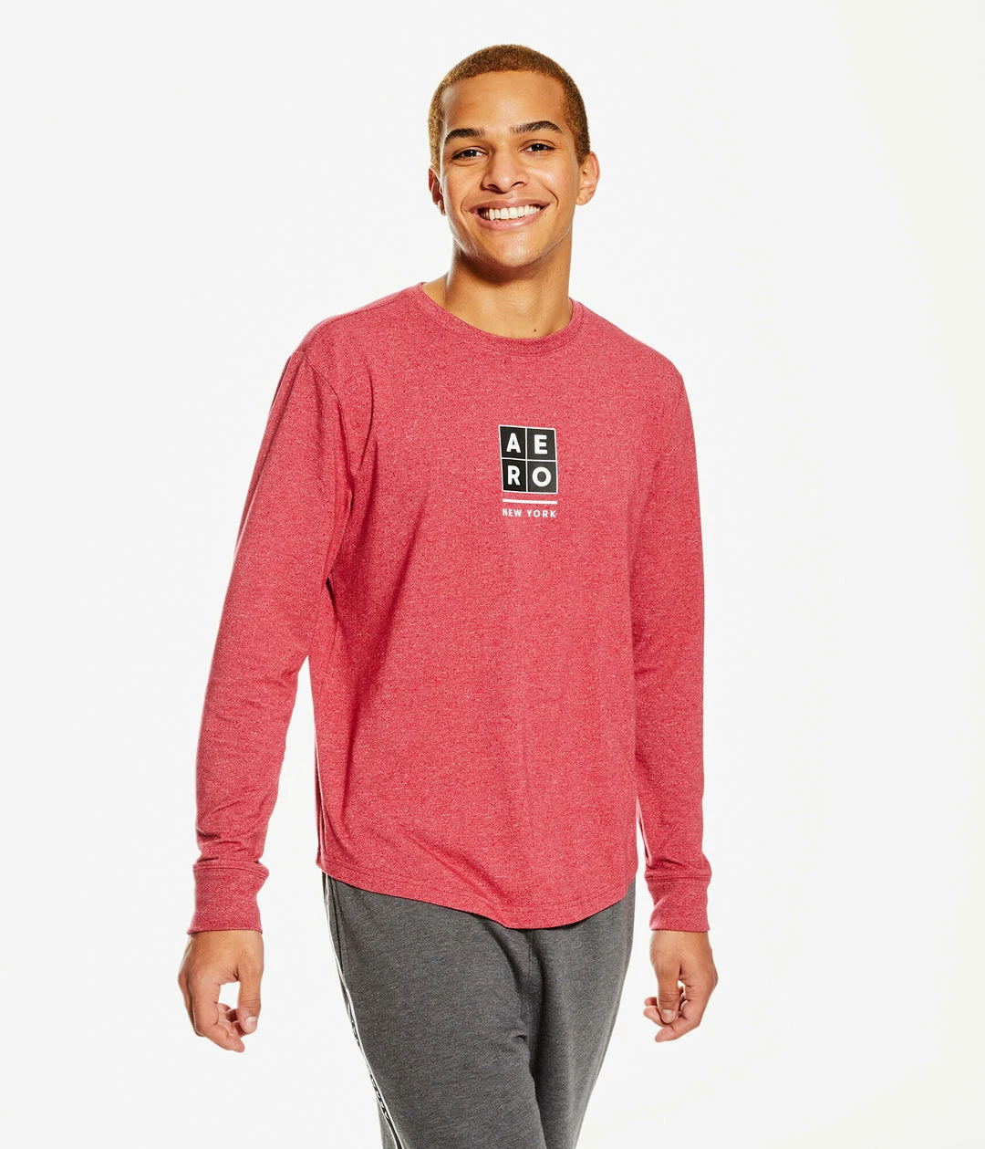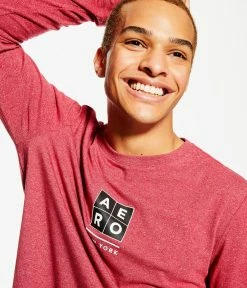Aeropostale Men’s Long Sleeve Box Logo Stretch Graphic Tee