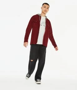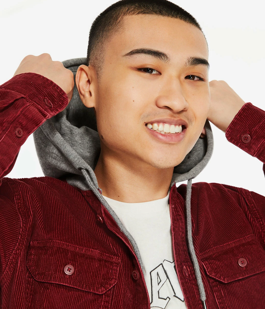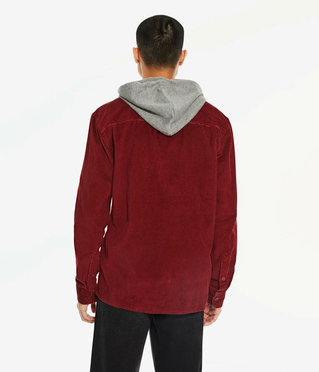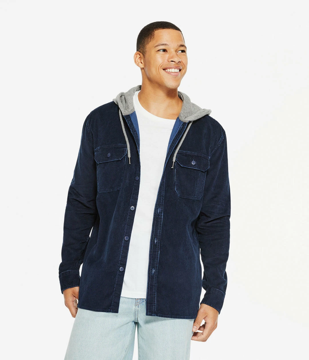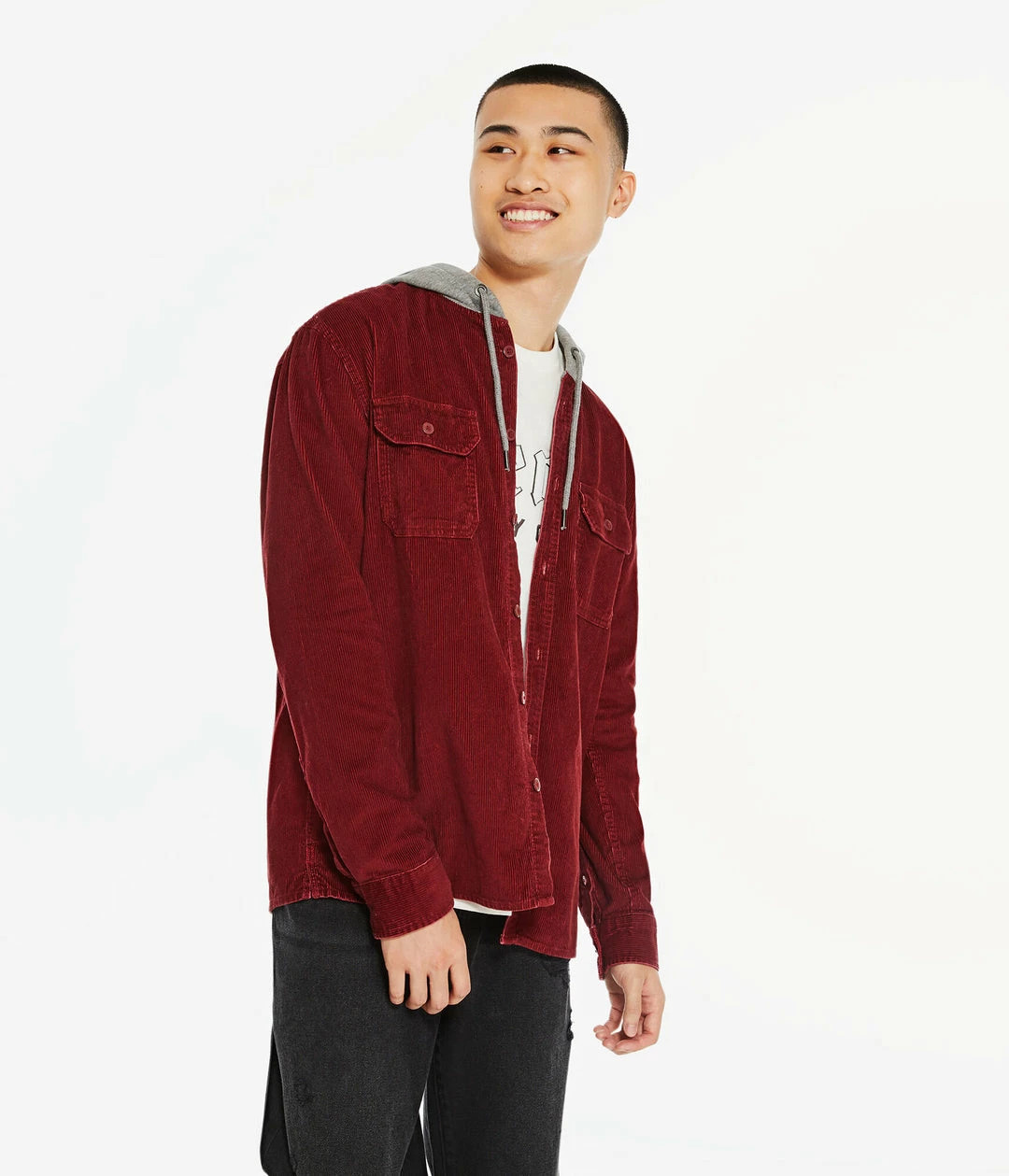 Aeropostale Men’s Long Sleeve Hooded Corduroy Button-Down Shirt