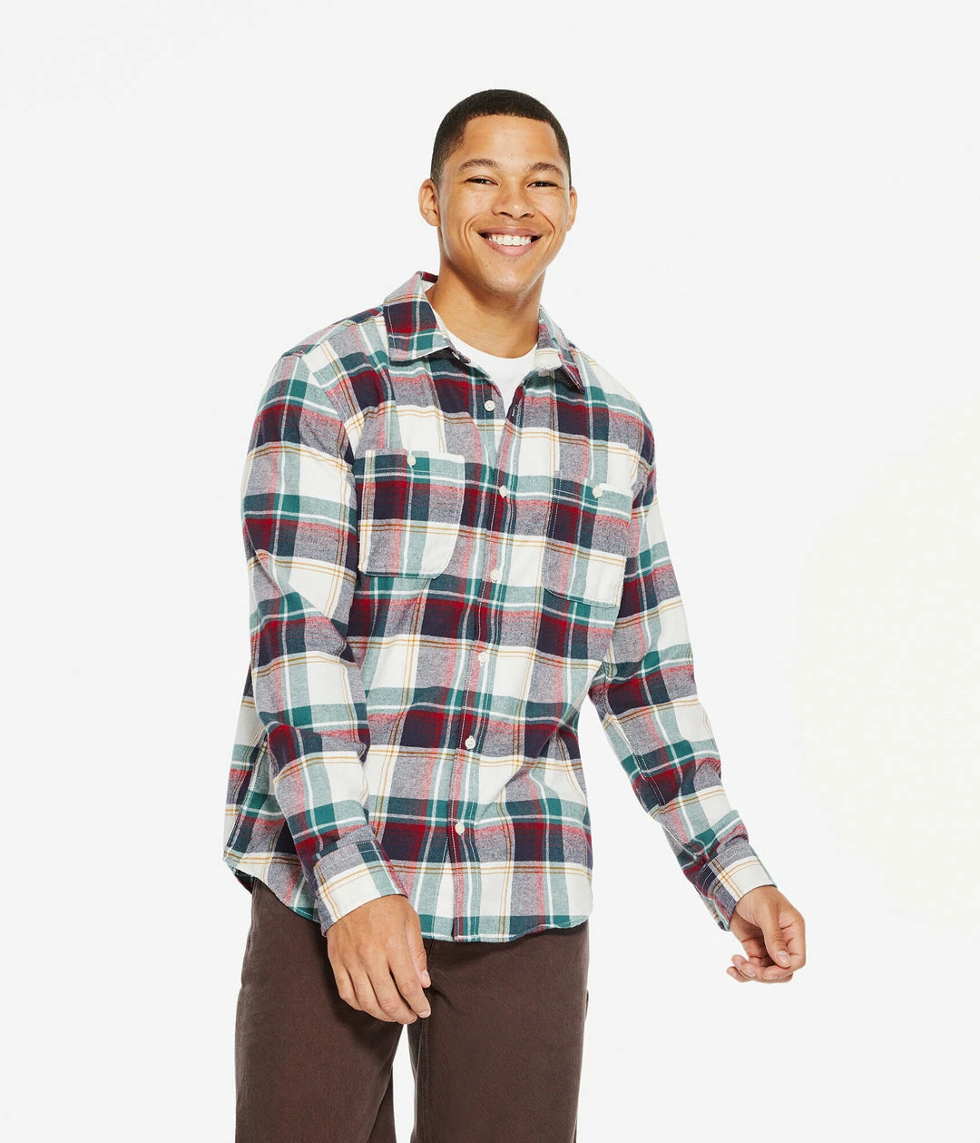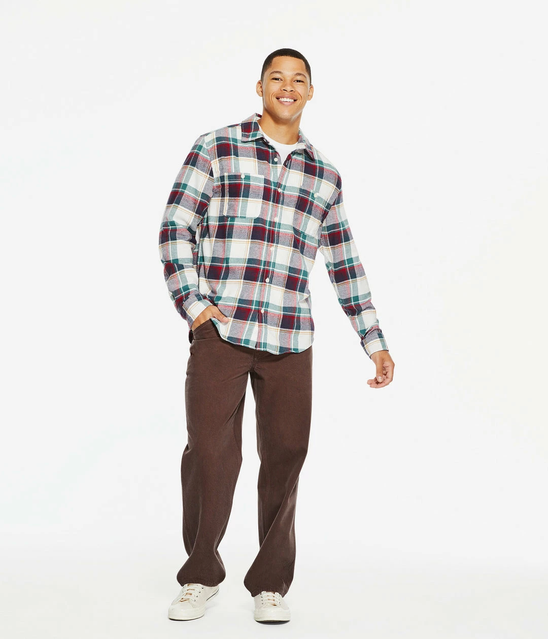 Aeropostale Men’s Long Sleeve Relaxed Washed Plaid Flannel Button-Down Shirt