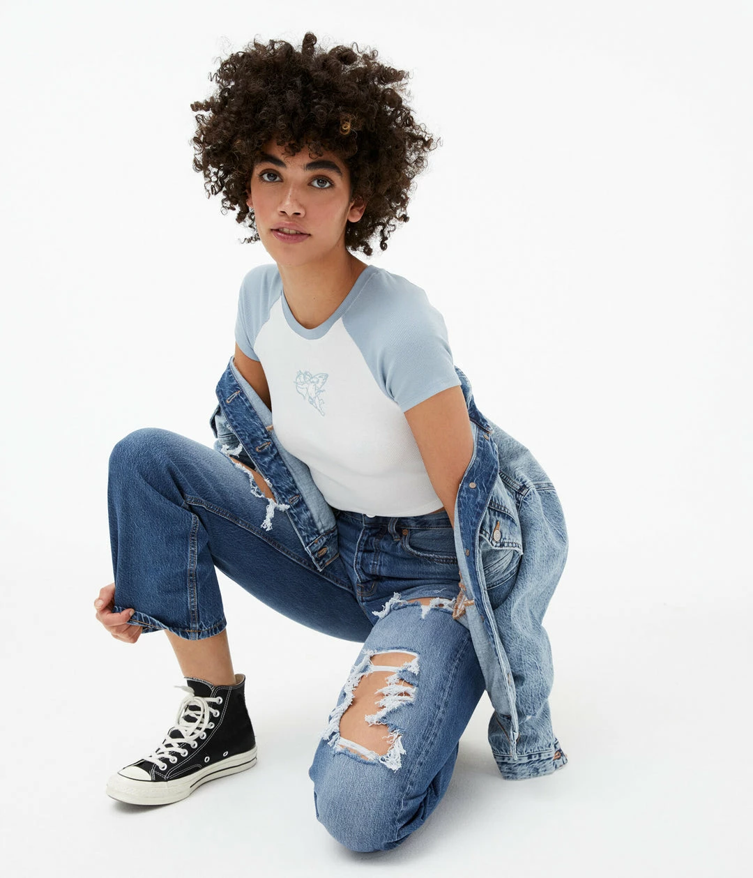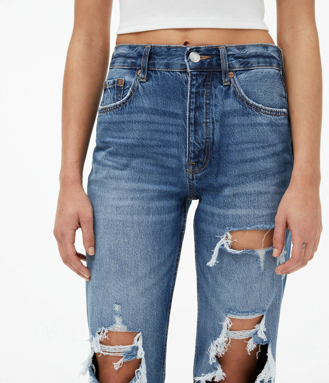 Extreme rips, a vibrant wash and a ’90s-inspired silhouette – your favorite jeans have arrived! Fabric features recycled cotton, which is crafted from a mix of pre- and post-consumer waste to help reduce landfills.