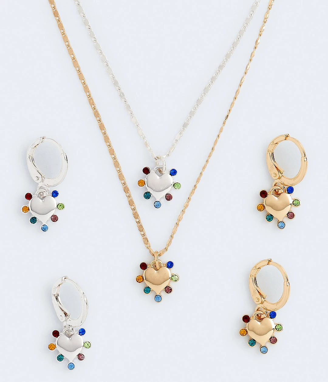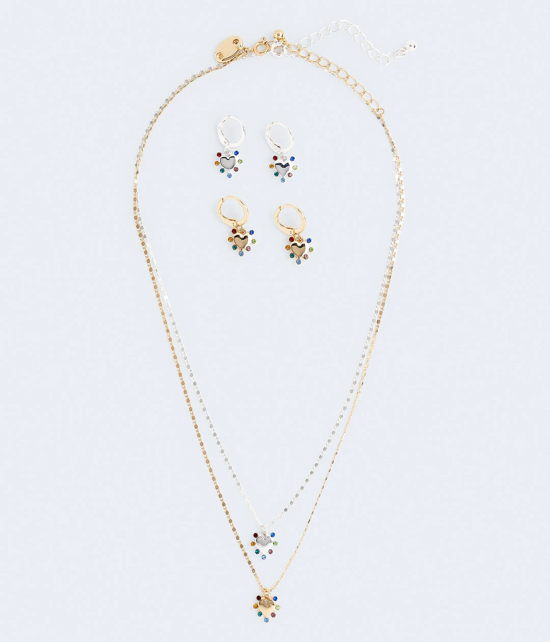 Aeropostale Women’s Best Friends Multicolor Rhinestone Heart Necklace & Earring