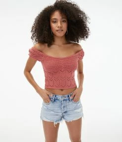 Aeropostale Women’s Crocheted Off-The-Shoulder Crop Top