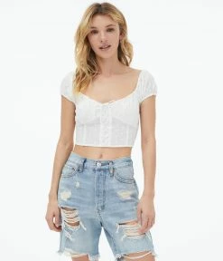 Aeropostale Women’s Eyelet Lace-Front Crop Top