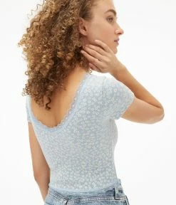 Aeropostale Women’s Floral Lace-Trim V-Neck Cropped Shrunken Tee