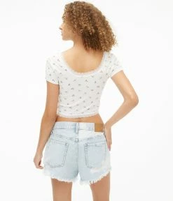 Aeropostale Women’s Floral Lace-Trim V-Neck Cropped Shrunken Tee