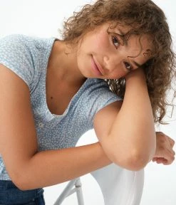 Aeropostale Women’s Floral Print Button-Front Shrunken Tee
