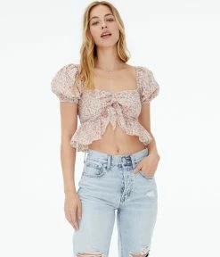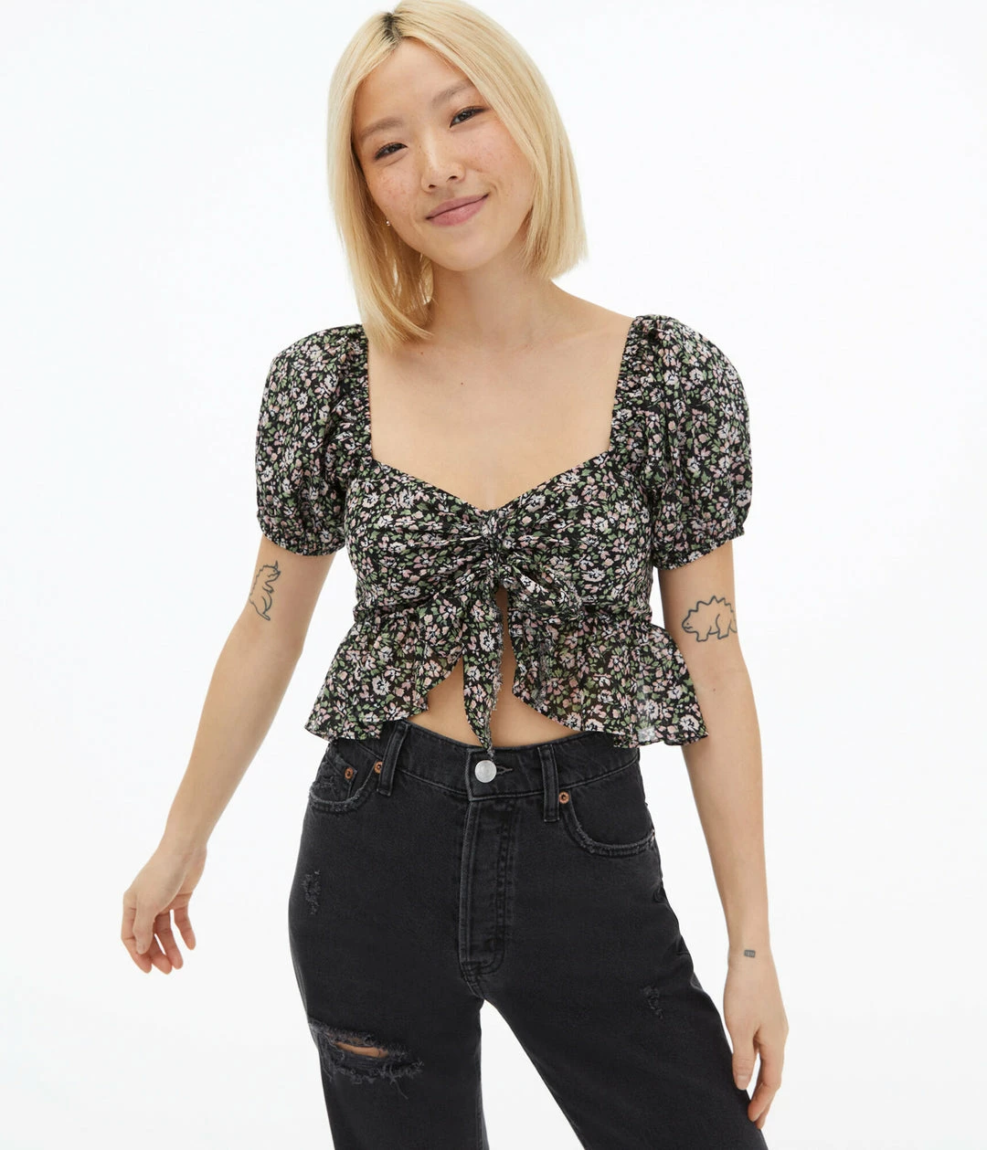 Aeropostale Women’s Floral Puff Sleeve Crop Top