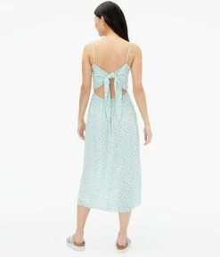 A dreamy floral dress in the length you love, accented with a playful front slit and tie at the back.