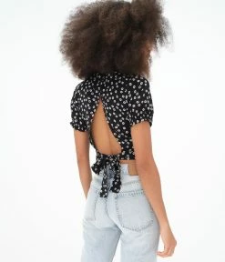 A darling crop top with the cutest crossover front and sassiest cutout back.