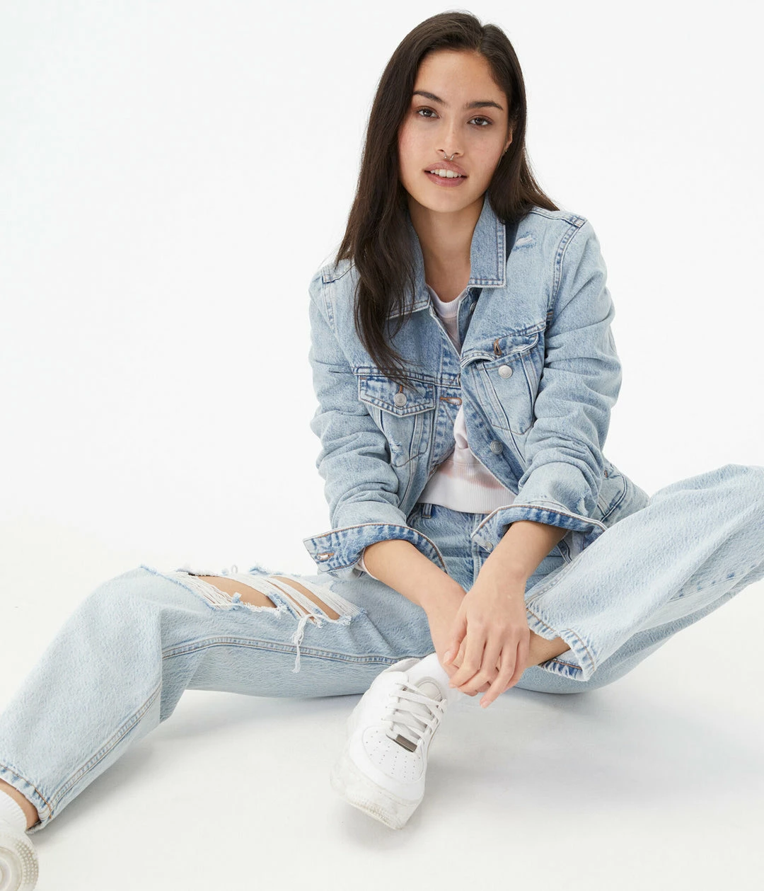 A classic rigid denim jacket, with perfectly placed destruction that adds a very vintage vibe.