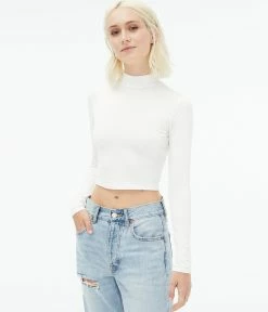 Aeropostale Women’s Long Sleeve Cropped Mock-Neck Tee