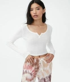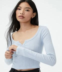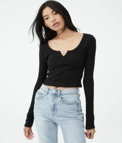 Aeropostale Women’s Long Sleeve Notch-Neck Cropped Shrunken Tee