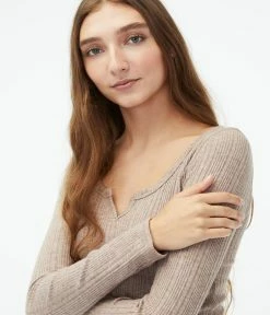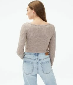 Aeropostale Women’s Long Sleeve Notch-Neck Cropped Shrunken Tee