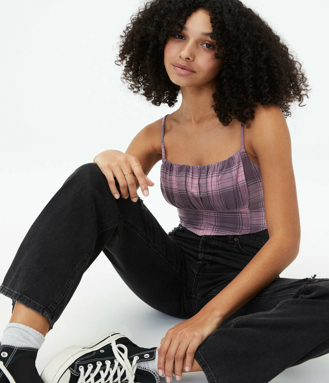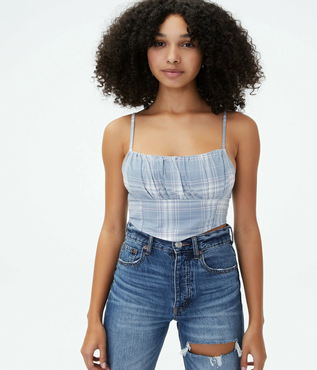 Check out the texture, pattern and unique cut — this is one stylish cami! Pair it with high-waisted Aero jeans and you can’t go wrong.