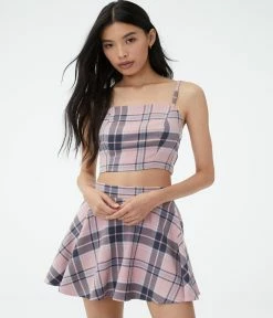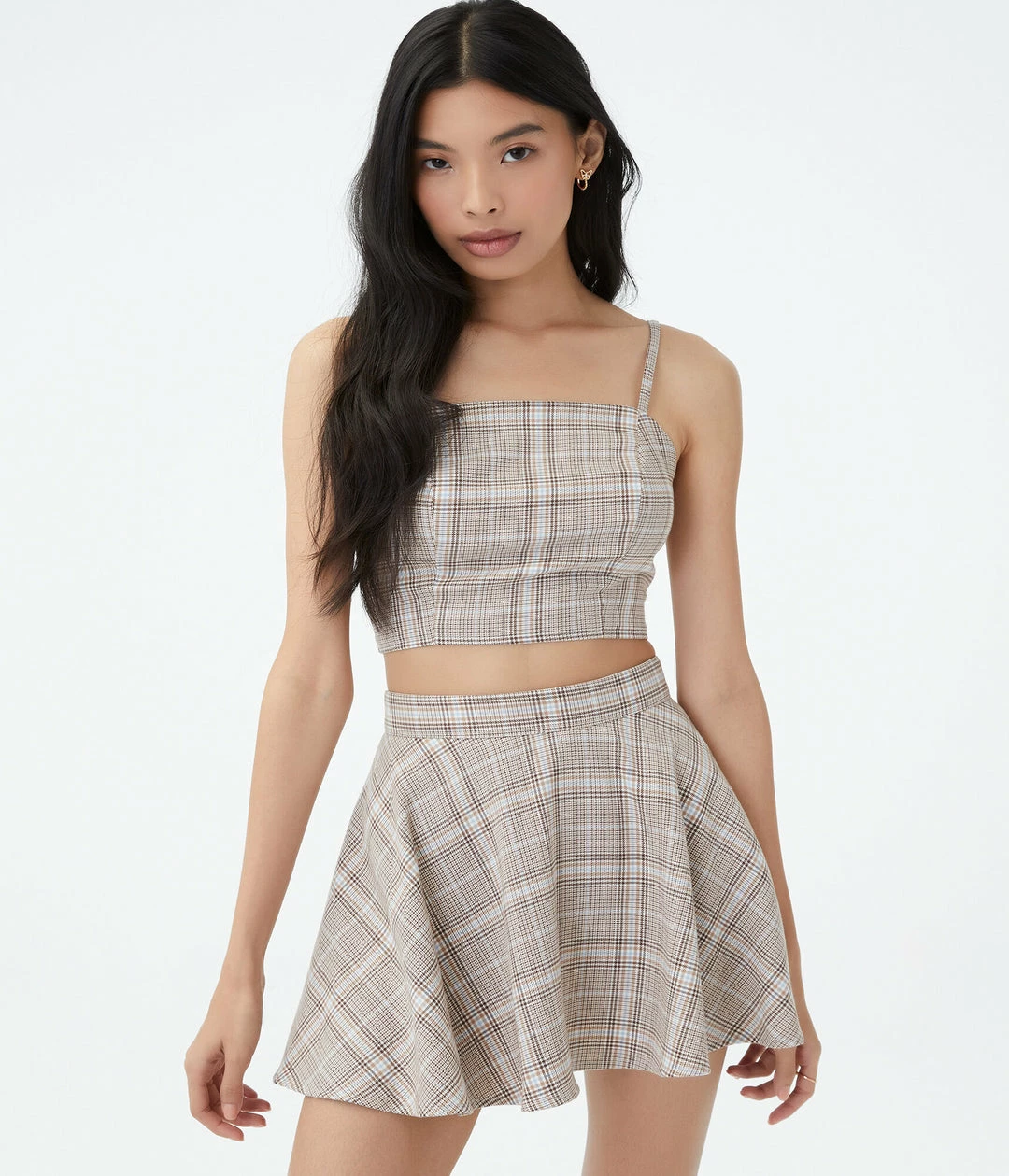 Aeropostale Women’s Plaid Square-Neck Crop Top