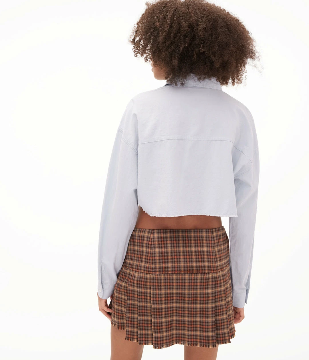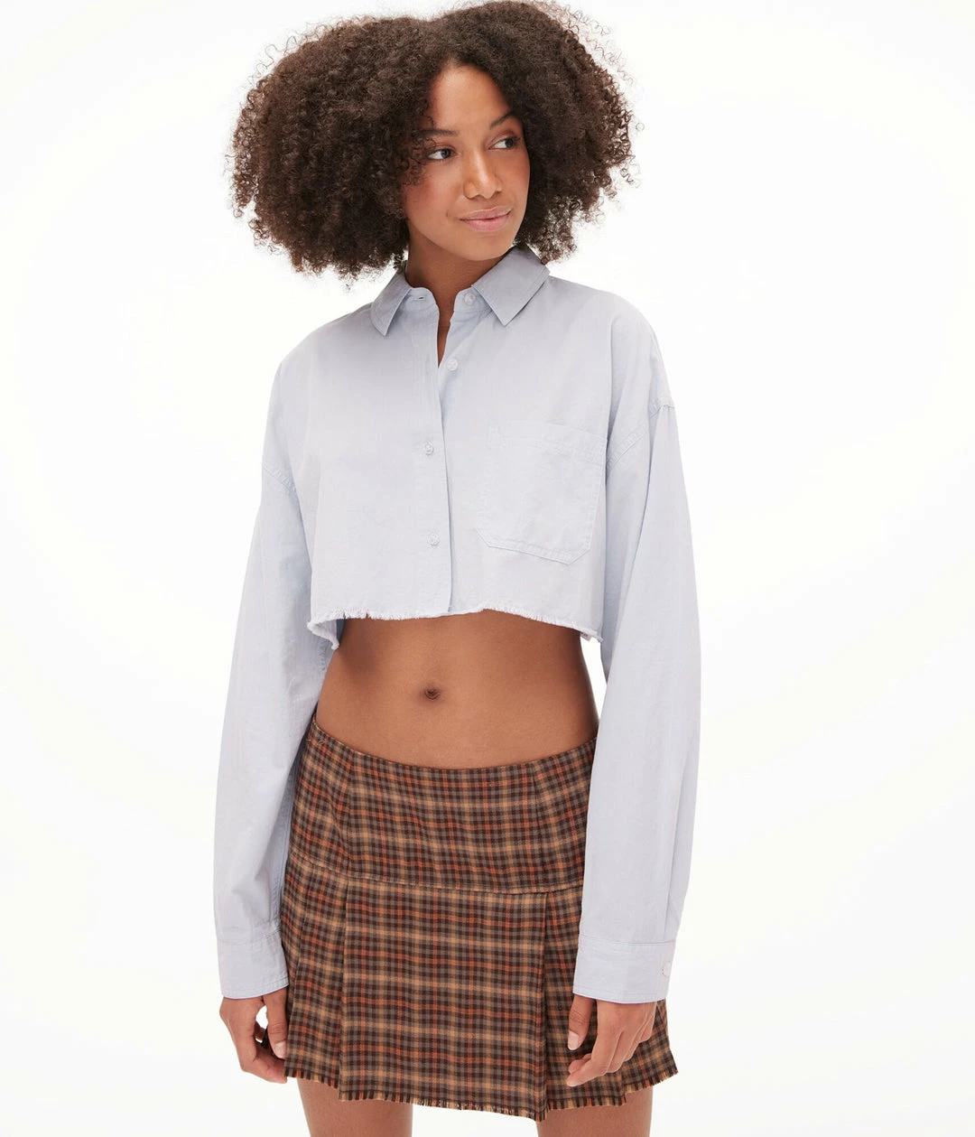 A classic poplin shirt with an of-the-moment cropped hem. Pairs perfectly with high-waisted skirts, shorts and jeans.