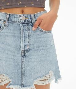 Create the cutest look with this destroyed denim mini and one of our stylish crop tops. Fabric features recycled cotton, which is crafted from a mix of pre- and post-consumer waste to help reduce landfills.