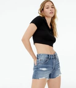 Aeropostale Women’s Premium Air Mid-Rise Slouchy Boyfriend Denim Shorts
