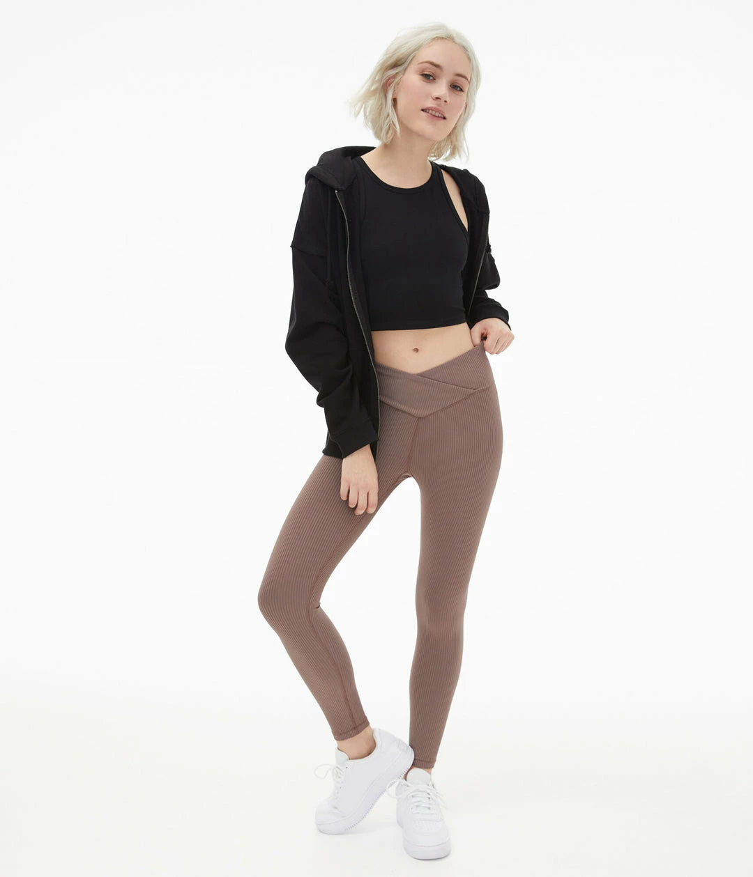 Aeropostale Women’s Ribbed High-Rise Crossover Leggings