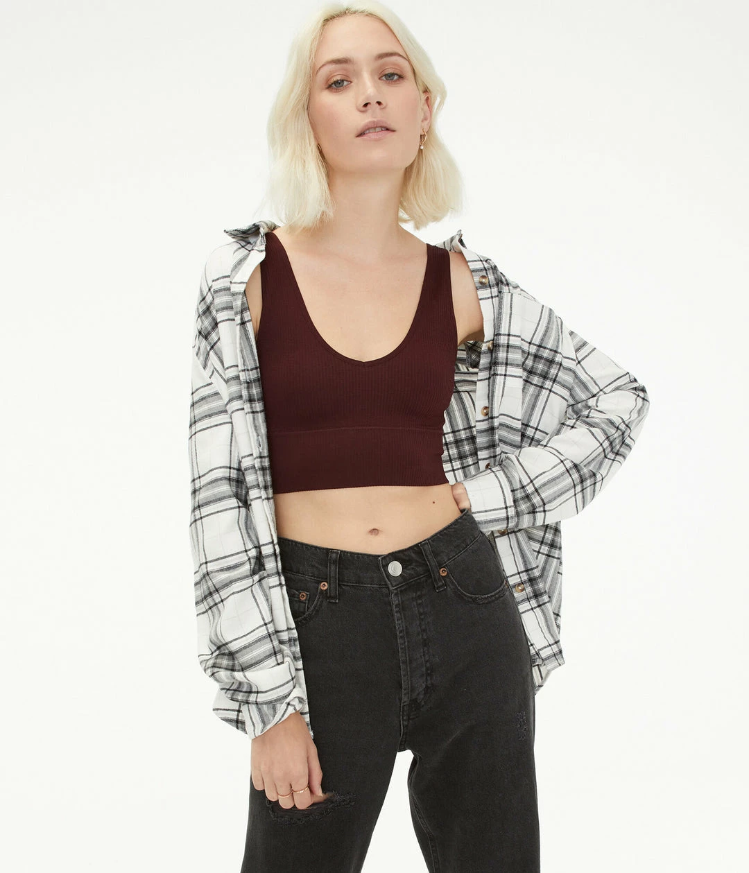 Aeropostale Women’s Ribbed Seamless Long-Line Bralette
