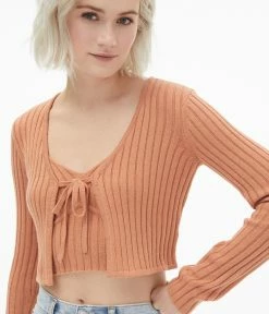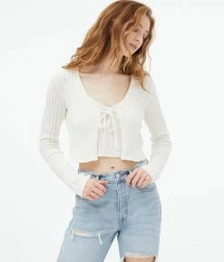 Aeropostale Women’s Ribbed Tie-Front Cropped Cardigan