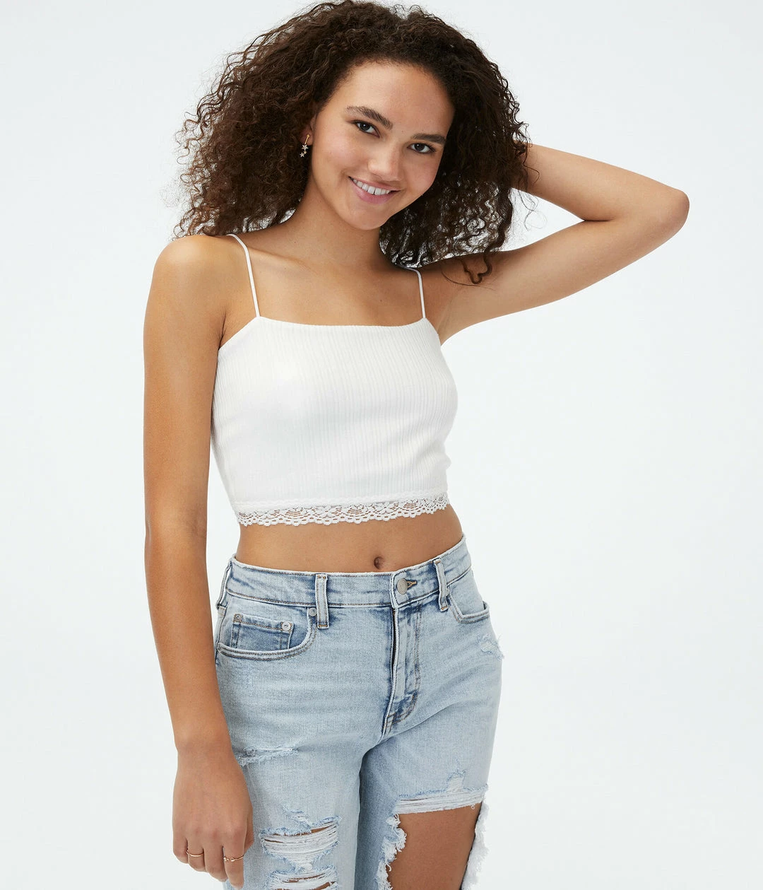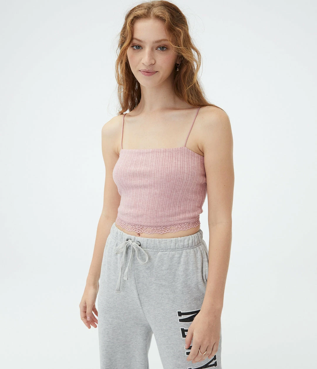 Aeropostale Women’s Seriously Soft Lace-Trim Cropped Bungee Cami