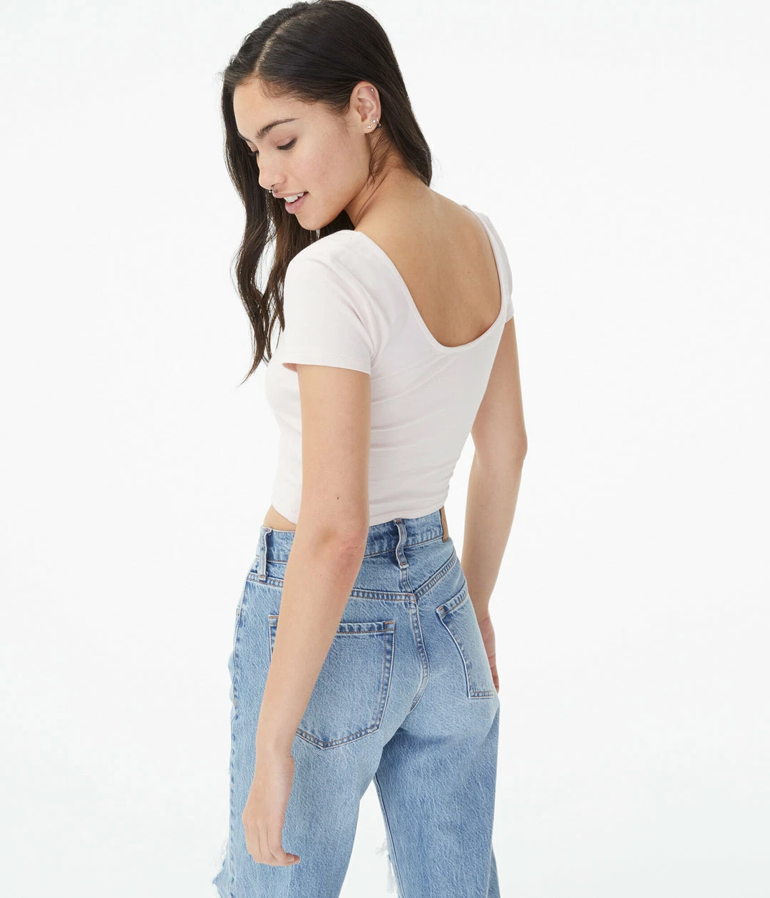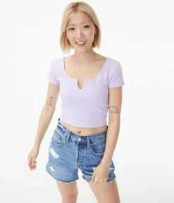 Aeropostale Women’s Seriously Soft Notch-Neck Cropped Baby Tee