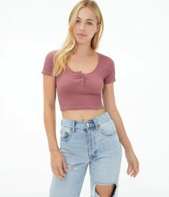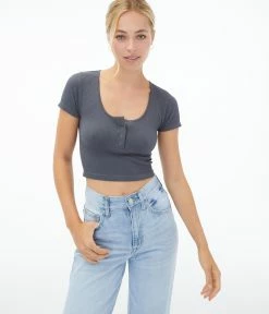 Aeropostale Women’s Seriously Soft Seamless Cropped Snap Henley