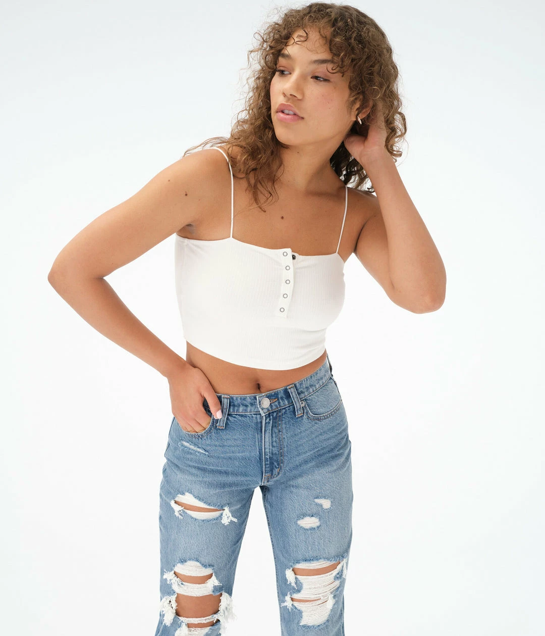 Aeropostale Women’s Seriously Soft Snap Henley Cropped Bungee Cami