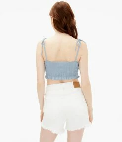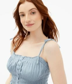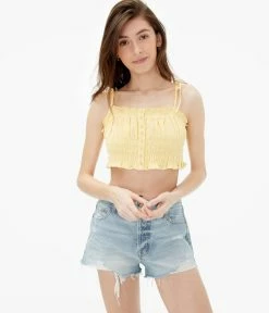 Aeropostale Women’s Smocked Button-Front Cropped Tie Tank