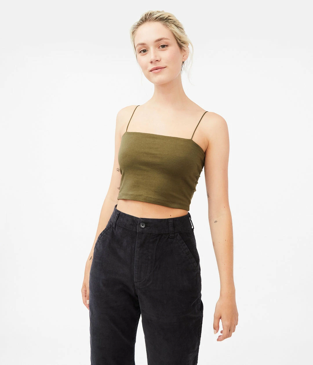 Your fave cami featuring a cropped cut that looks so cute with high-waisted denim. Fabric features organically grown cotton, which is naturally cultivated without the use of toxic chemicals to help prevent soil and water pollution.