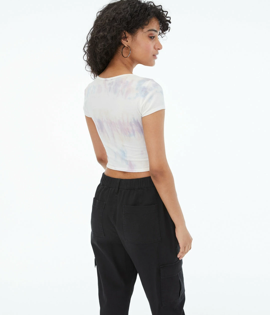 Aeropostale Women’s Tie-Dye Cropped Snap Henley Tee