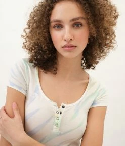 Aeropostale Women’s Tie-Dye Cropped Snap Henley Tee