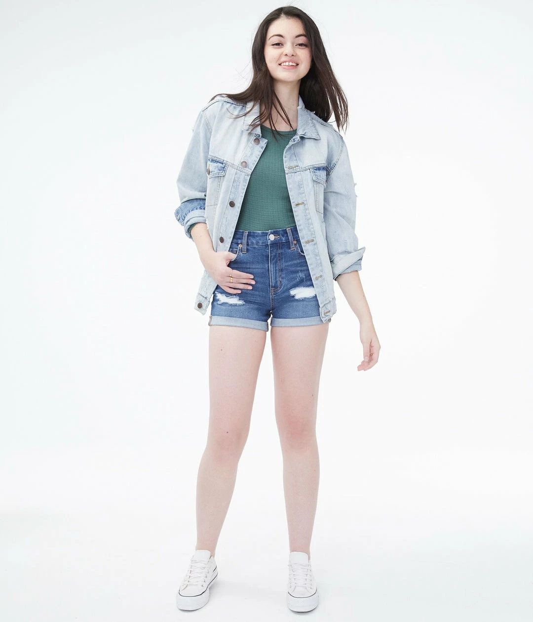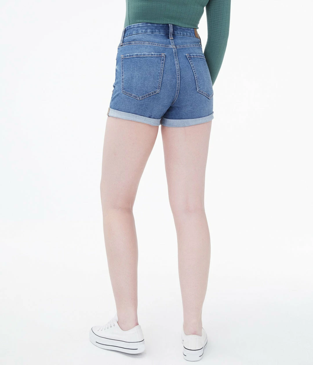 Aeropostale Womens Flex Effects High-Rise Curvy Denim Midi Shorts