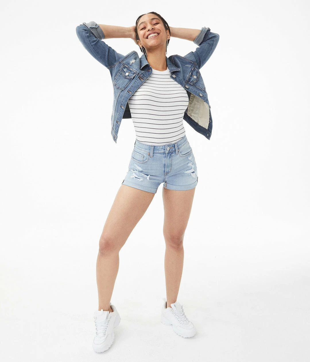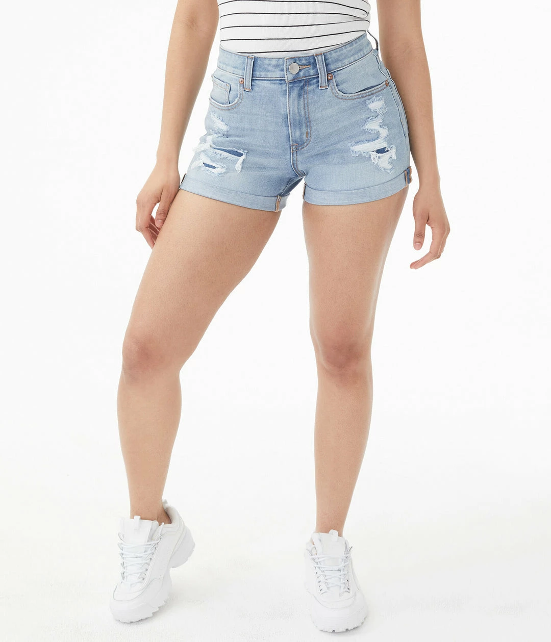 Aeropostale Womens Flex Effects High-Rise Denim Midi Shorts