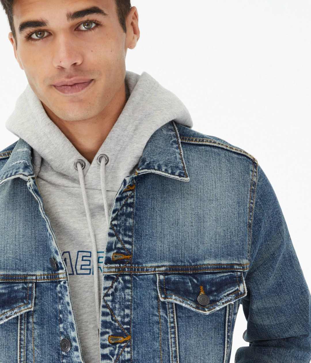 Aeropostale Womens Men’s Medium Wash Stretch Denim Trucker Jacket