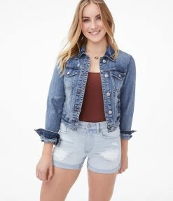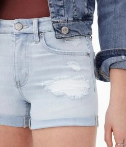 Aeropostale Womens Seriously Stretchy High-Rise Denim Midi Shorts