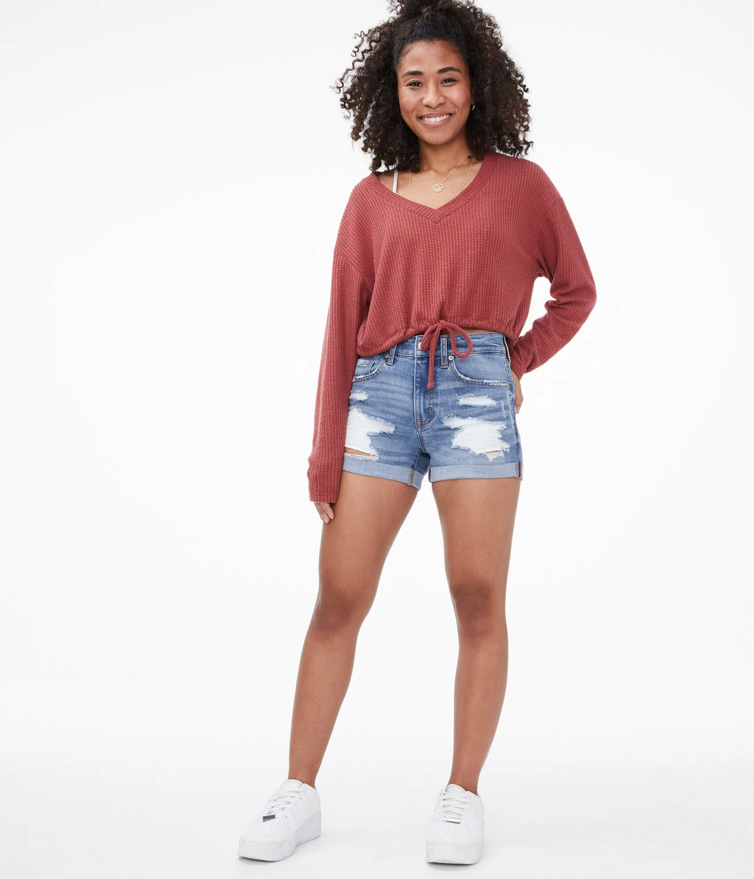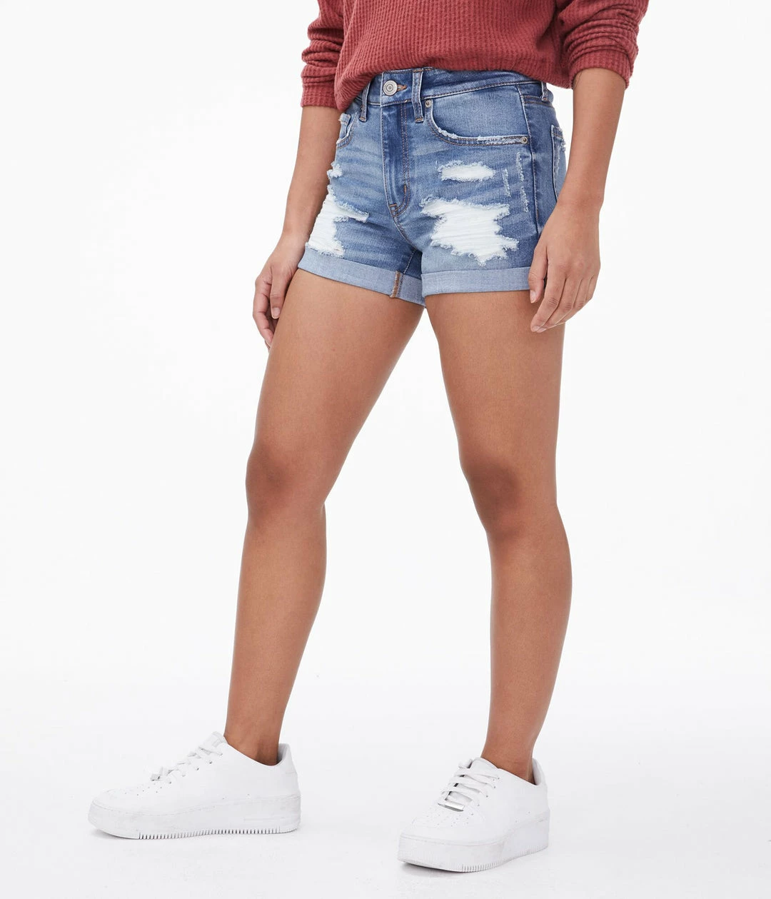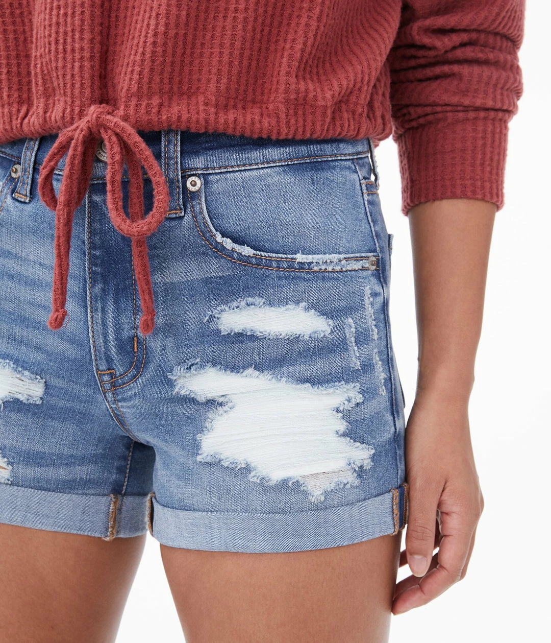 Aeropostale Womens Seriously Stretchy High-Rise Denim Midi Shorts