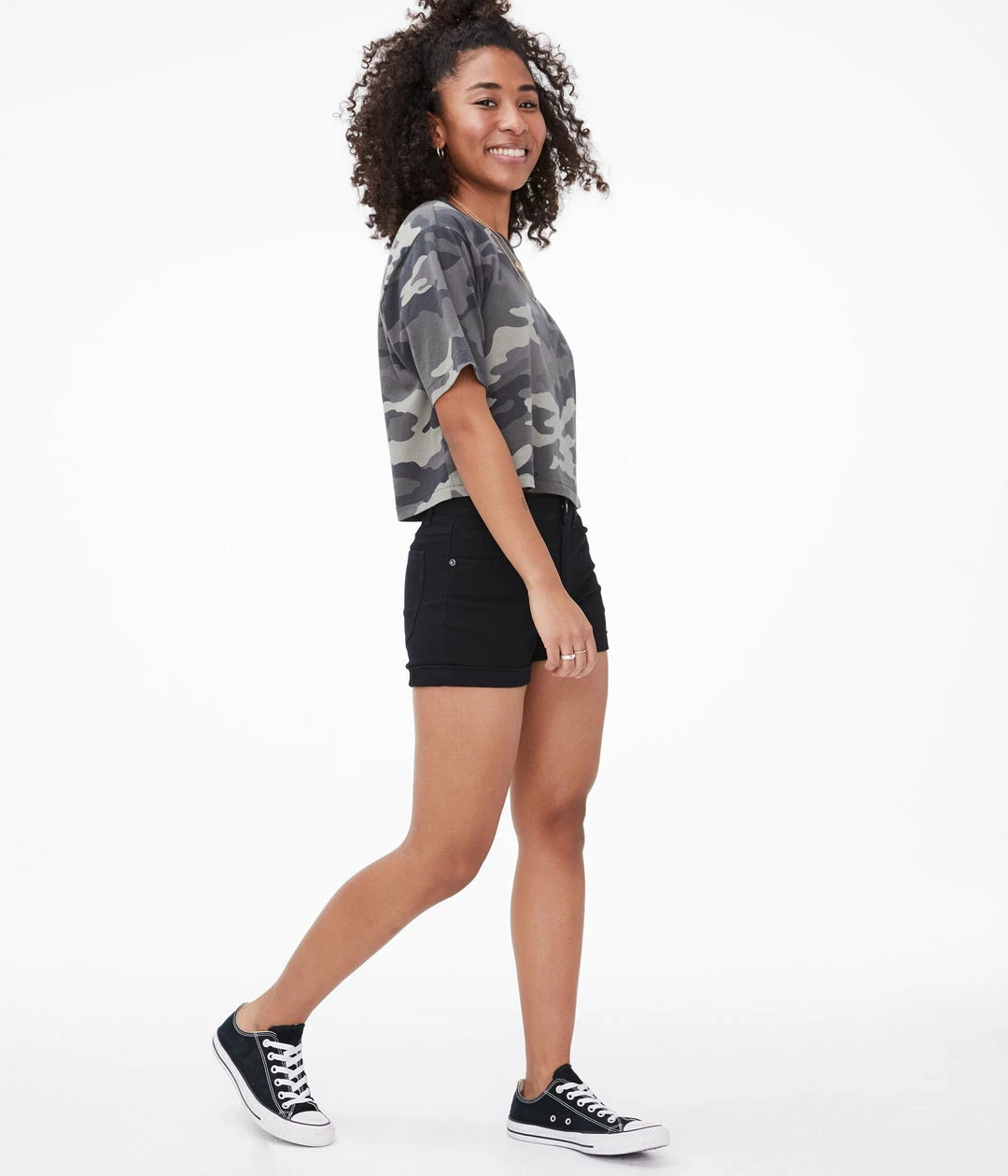 Keep your look classic with these stretchy denim midi shorts in a clean black wash.