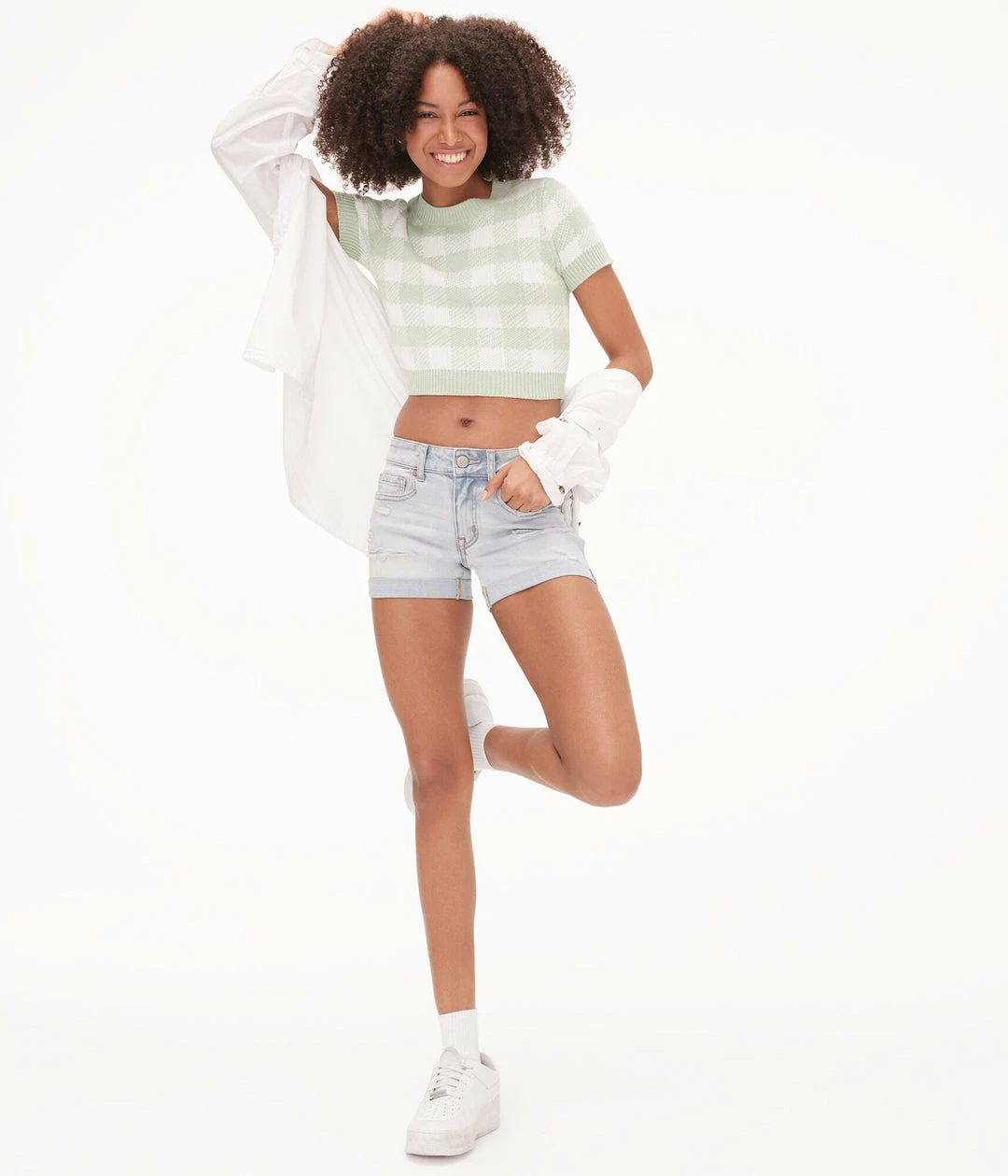 Aeropostale Womens Seriously Stretchy Low-Rise Denim Midi Shorts